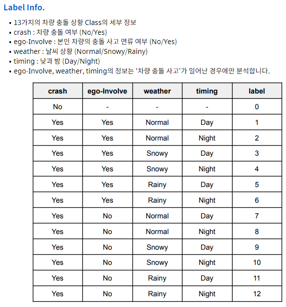 이를 13가지 상황(Class)으로 분류하는 AI 모델을 개발해야 합니다.