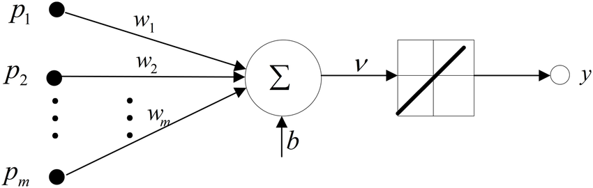 이 네트워크는 하나의 레이어로 구성되며, 각 뉴런은 입력 특징 벡터와 가중치 벡터 간의 선형 조합을 계산한 다음, 바이어스 값을 추가합니다.
