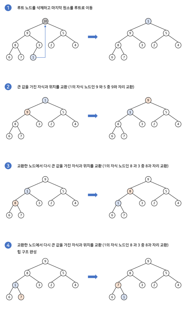 # 4. 바뀐 자식노드의 힙을 재구조화